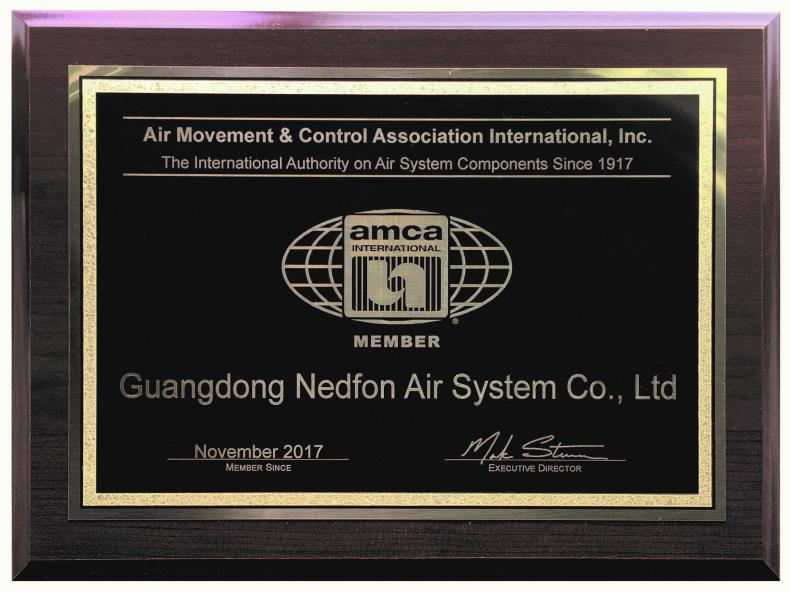 Chứng nhận AMCA của quạt thông gió Nedfon
